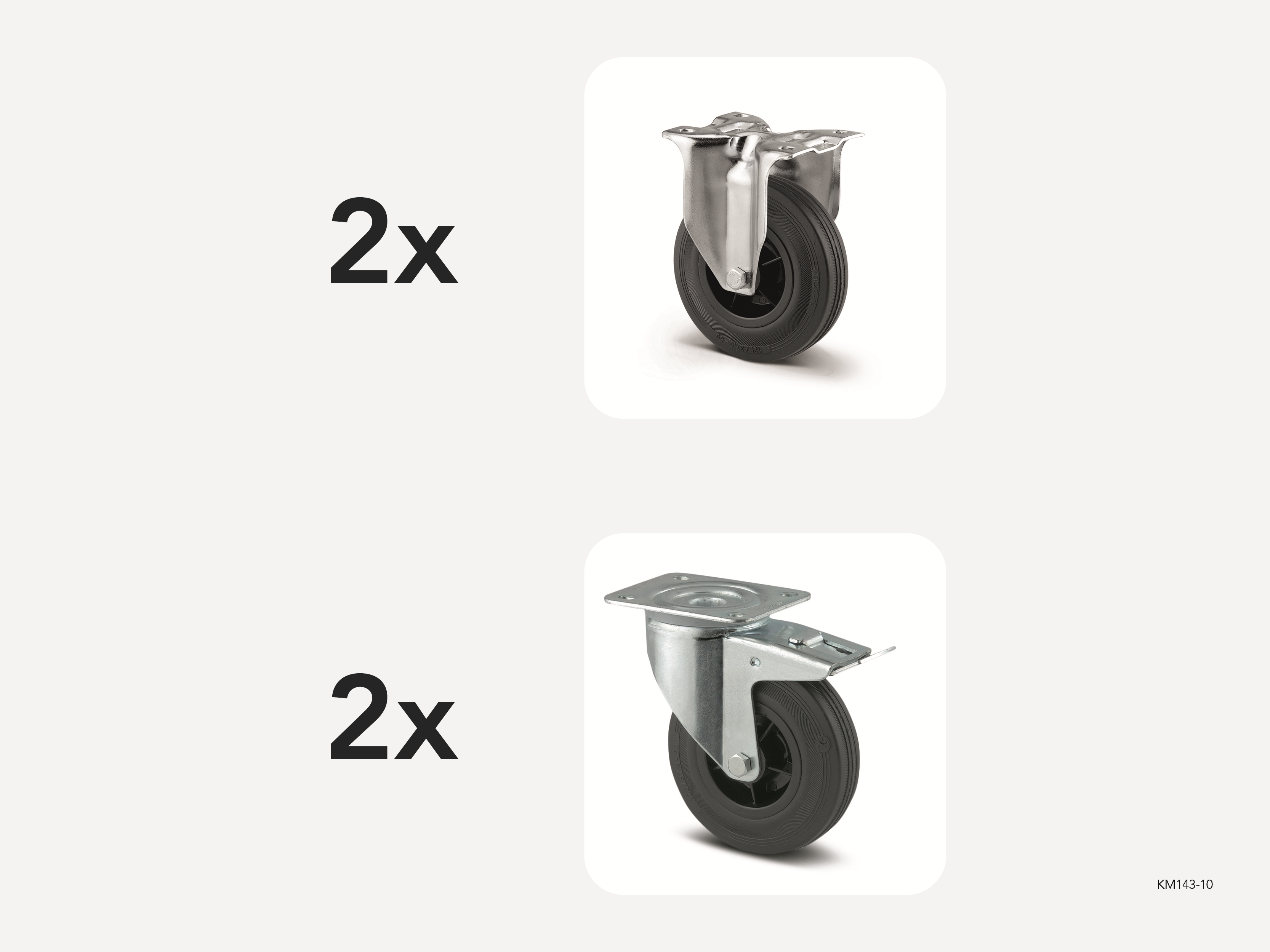 NOTEThis is a replacement castor set, can not be purchased separately.Can only be purchased together with one of our trolleys.You can find our separate castor sets under Products/Wheels, Replacement.