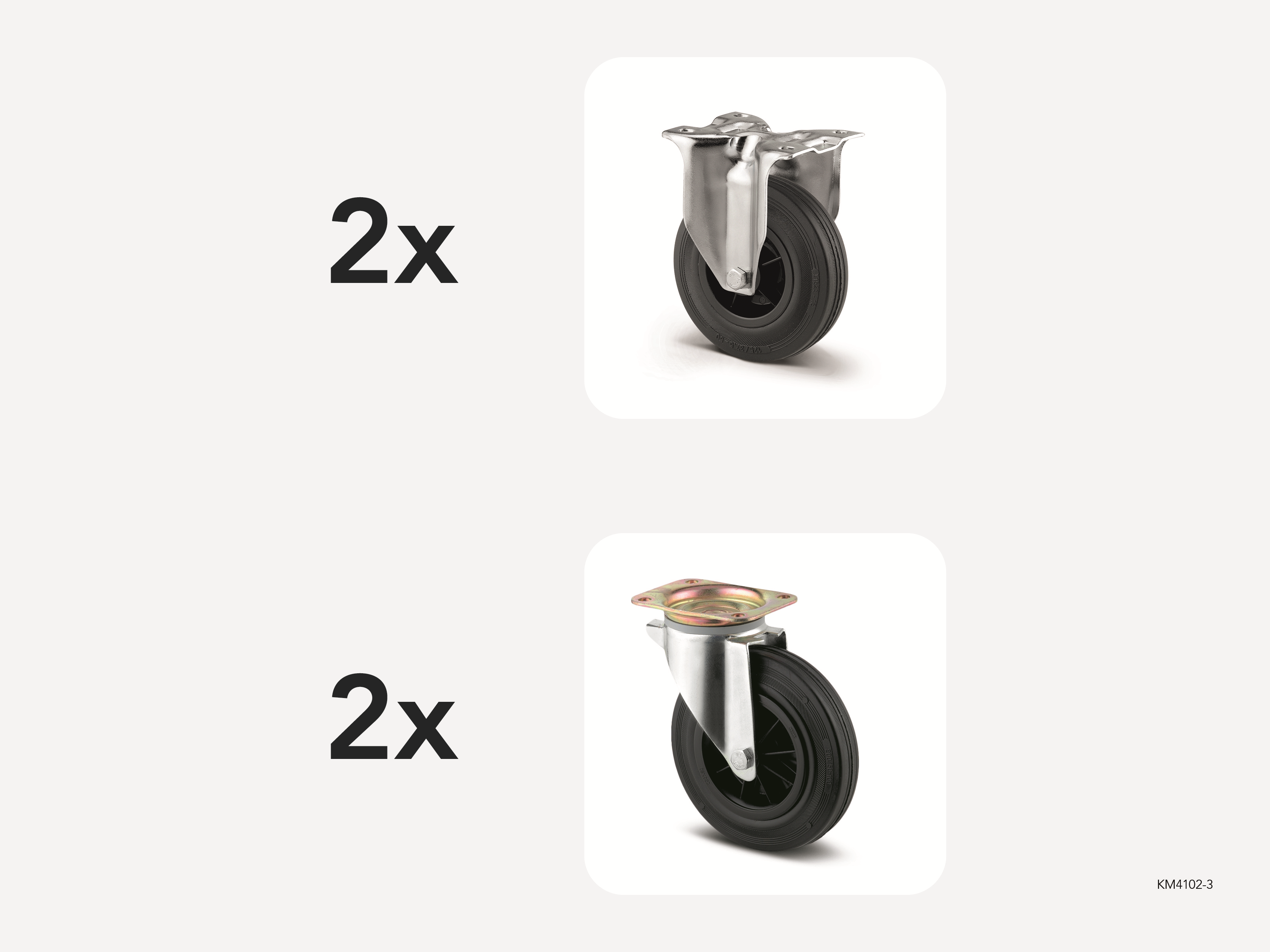 NOTEThis is a replacement castor set, can not be purchased separately.Can only be purchased together with one of our trolleys.You can find our separate castor sets under Products/Wheels, Replacement.